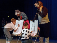 The play invites to learn: children learn how to trust each other, work together, they acknowledge – what is good and what is bad. The play educates children about numbers, counting and number sequences. The child conceives the concept of size, develops the ability to orient oneself in time and space. Actors always make sure that the little members of the audience are being involved in action during the play.